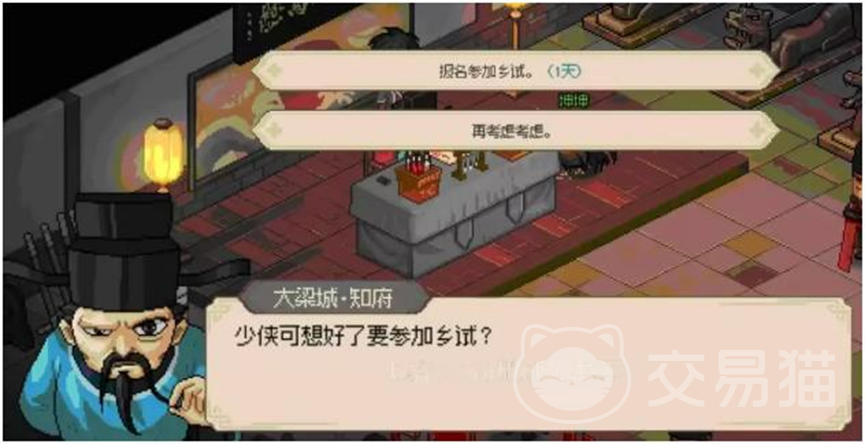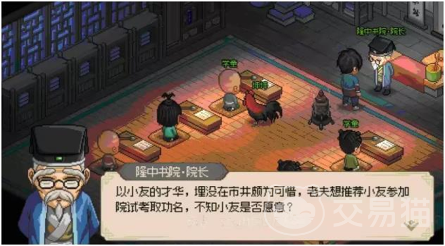 首先我们要去楚襄城的隆中书院找院长院长进行答题,每一轮答题正确则可以增加五点智慧值,每天可以答题一轮,五轮后便可以参加院试。然后我们去找楚襄城知府参加院试。