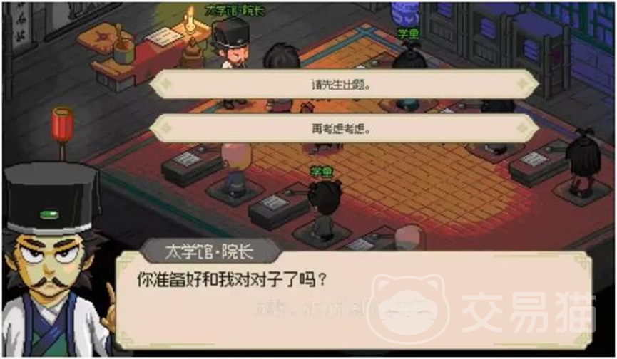通过院式答题之后三日我们会收到一份飞鸽传书,通知我们去太学馆找院长对对子。同样,通过之后还会有下一关,来到乡试。