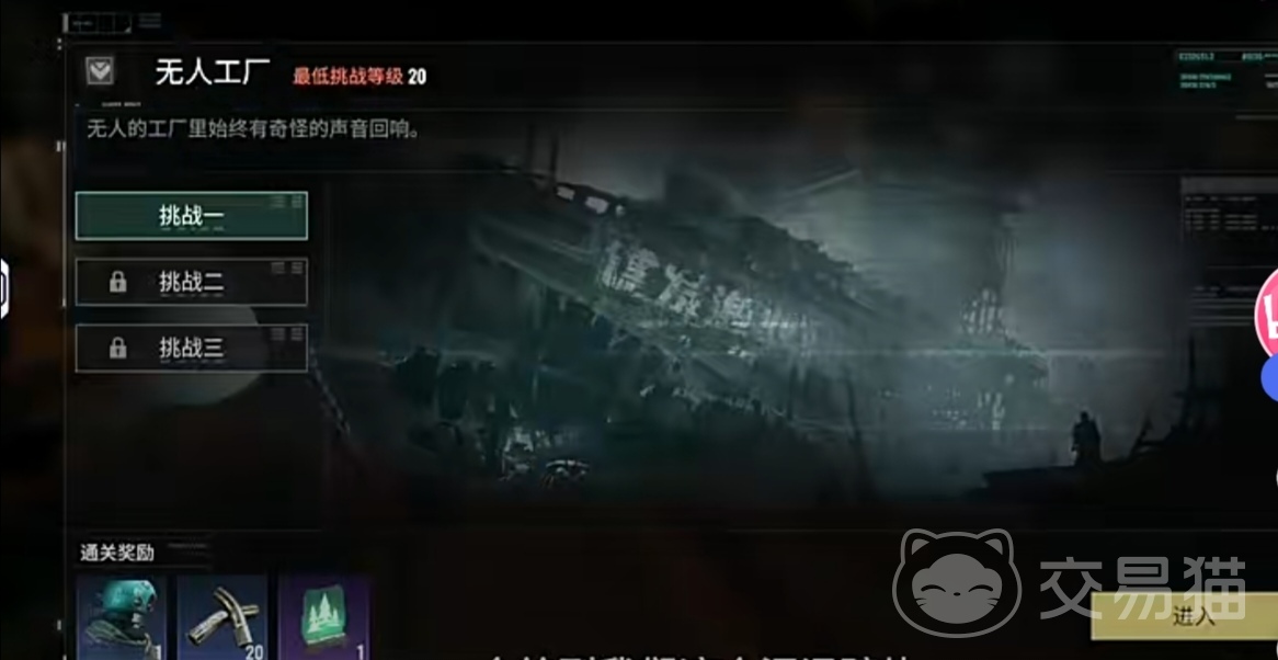 寻找碎片时大家可以自由选择先探索的地方,比如我们先探索的是无人工厂,无人工厂就在雾虚沼泽处航母废墟的地方,进入无人工厂后会出现三个挑战,只要完成这三个挑战就可以获得副本碎片了,在这里可能有很多玩家不知道伙伴到底在哪里,其实当我们完成了挑战一之后,你就可以获得一个机器人,这个机器人就是用来解锁伙伴功能的道具。