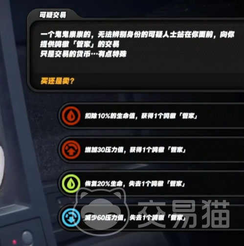 接着通过唯一的道路,一路获取齿轮硬币。正在开心的时候,被告知鸣徽是有携带上限的,一开始玩家只有8个上限;而任务目标是上交20个鸣徽,所以此时任务目标不仅是拿到更多的鸣徽,还需要提升鸣徽上限值,否则最多也只能带8个。然后鸣徽管家也随之出现,所谓鸣徽管家,其实就是玩家可以手动点击触发的事件,事件可能产生各种供玩家选择的交易。交易是随机的,任务中的各种资源、鸣徽甚至角色状态都可以交易。比如失去鸣徽获得鸣徽上限、增加压力得到鸣徽、失去鸣徽管家恢复生命、失去齿轮硬币得到鸣徽等等。