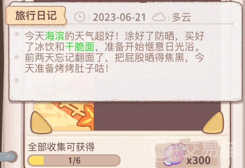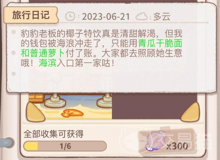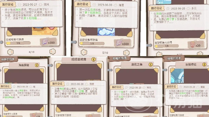 最后两个任务分别是浪花之舞和巨鲸传说,玩家分别准备好馕和甜寿司即可,如果玩家达成了全收集,则可以解锁扭扭草裙舞的相关任务内容,玩家要提前准备好萝卜和馕,再将这些食物分发给客人之后,玩家就彻底完成了海滨地图上的所有任务,不仅能够获得海滨的徽章才能够获得海滨成就。