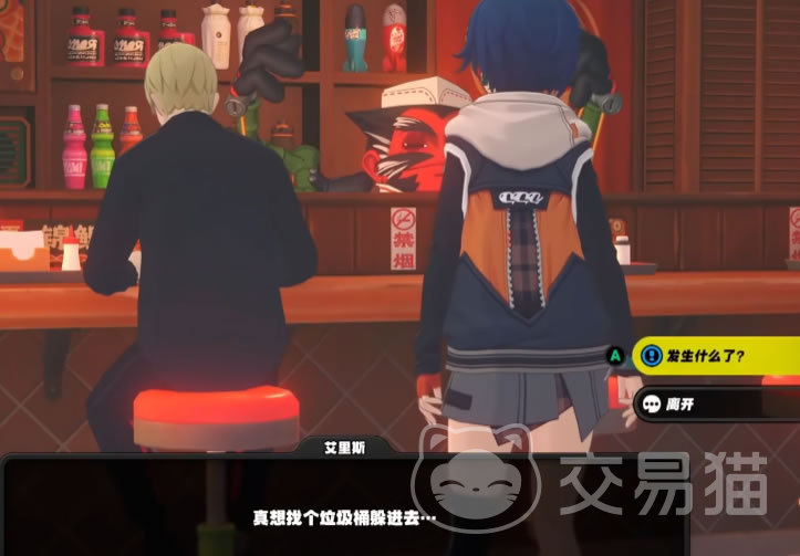 当时间处于上午时去拉面馆,发现艾里斯在那吃面。与他交互他会说他想找个垃圾桶躲进去;因为在某个女孩脚边捡起了一个纪念币,搭讪女孩她却说那不是她的东西;觉得自己没用的艾里斯希望你帮他把纪念币丢到垃圾桶里去,顺便告诉你发现了一个会说话的垃圾桶。