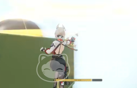 这个把手就是第一个点位了,之后是第二个点位,这个点位需要大家在门把手上站着然后往前面看,之后需要利用沿着旁边的墙边往前面慢慢的滑行,之后等到滑行到管道旁边之后需要利用一个飞行内的技能往上飞。
