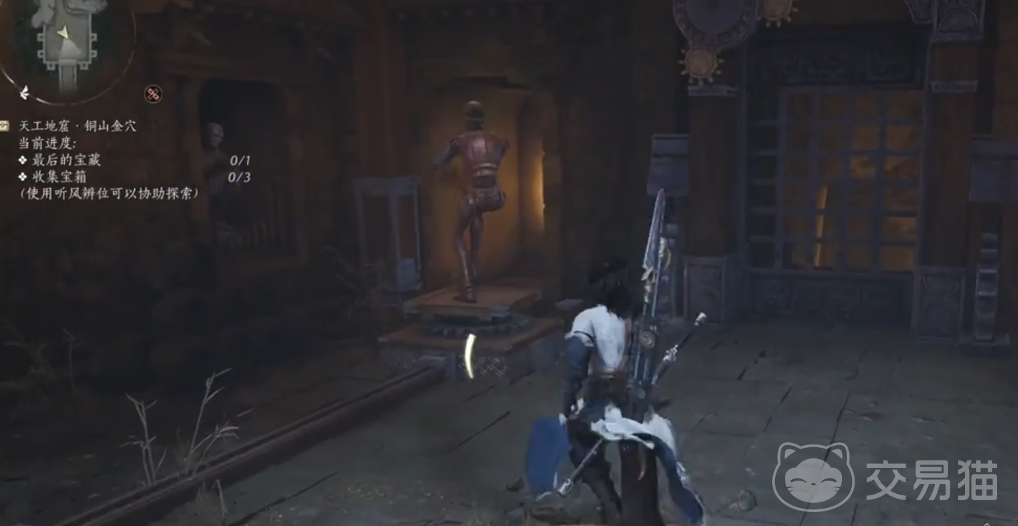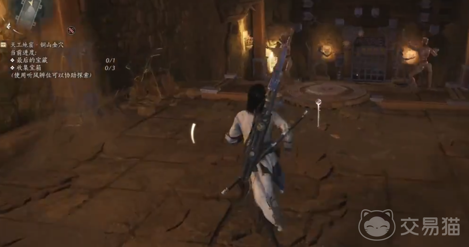 首先我们要找到铜山金穴的位置,它在千佛谷传送点的左下方,进入这个金穴后先一直往前走,直到到达第一个场景,我们会看见两个铜像和一个圆盘,玩家需要在圆盘上面站立,这样左右转动可以让铜像转动。