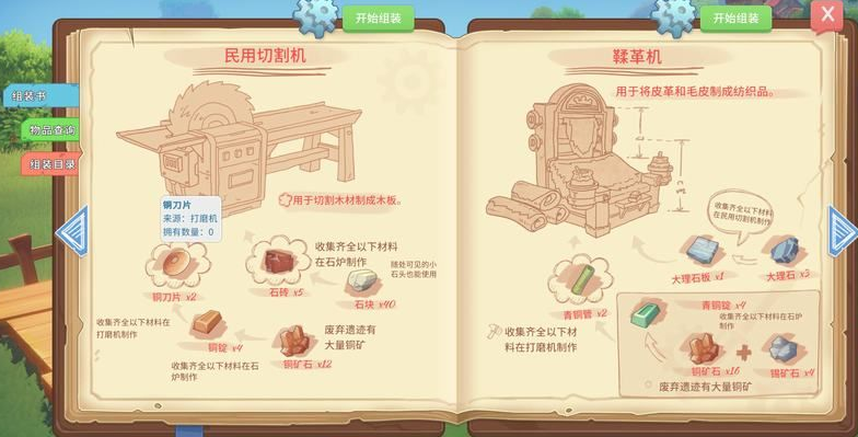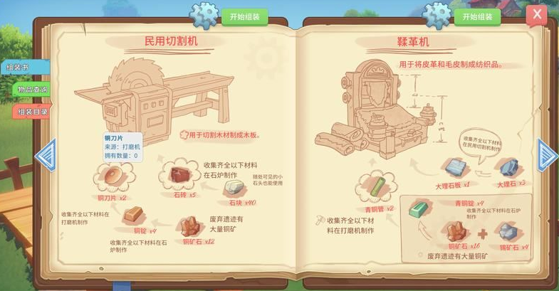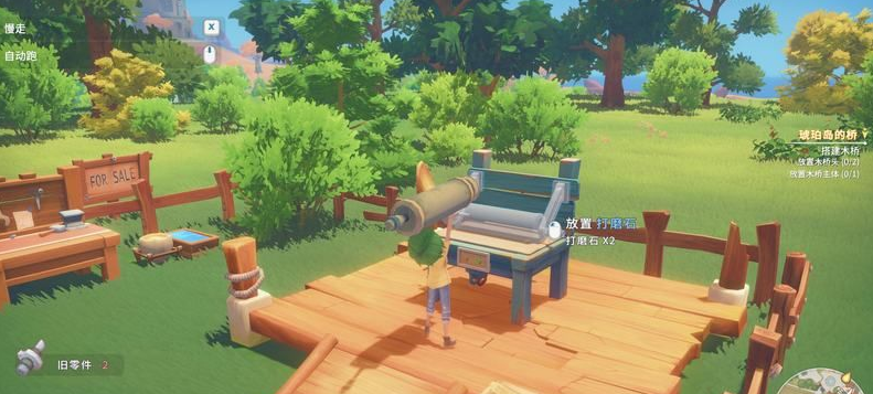 玩家们首先需要通过剧情接取修建琥珀岛大桥的任务,可以在任务页面找到完成任务所需要的道具,在这次的任务中需要玩家们先制作出民用切割机以及打磨台来完成后续任务道具的制作。民用切割及需要大量的矿石以及树木,小编推荐玩家们可以在自己的住所周边以及小镇大门的周围进行基础材料的收集。这里有个小提示,如果玩家们不清楚任务道具需要如何制作,可以在工作台的制作页面中点击物品,物品图标会弹出与所需工作和材料的相关提示。例如琥珀岛大桥的木桥头和木桥主体就需要使用上文中提到的民用切割机制作。