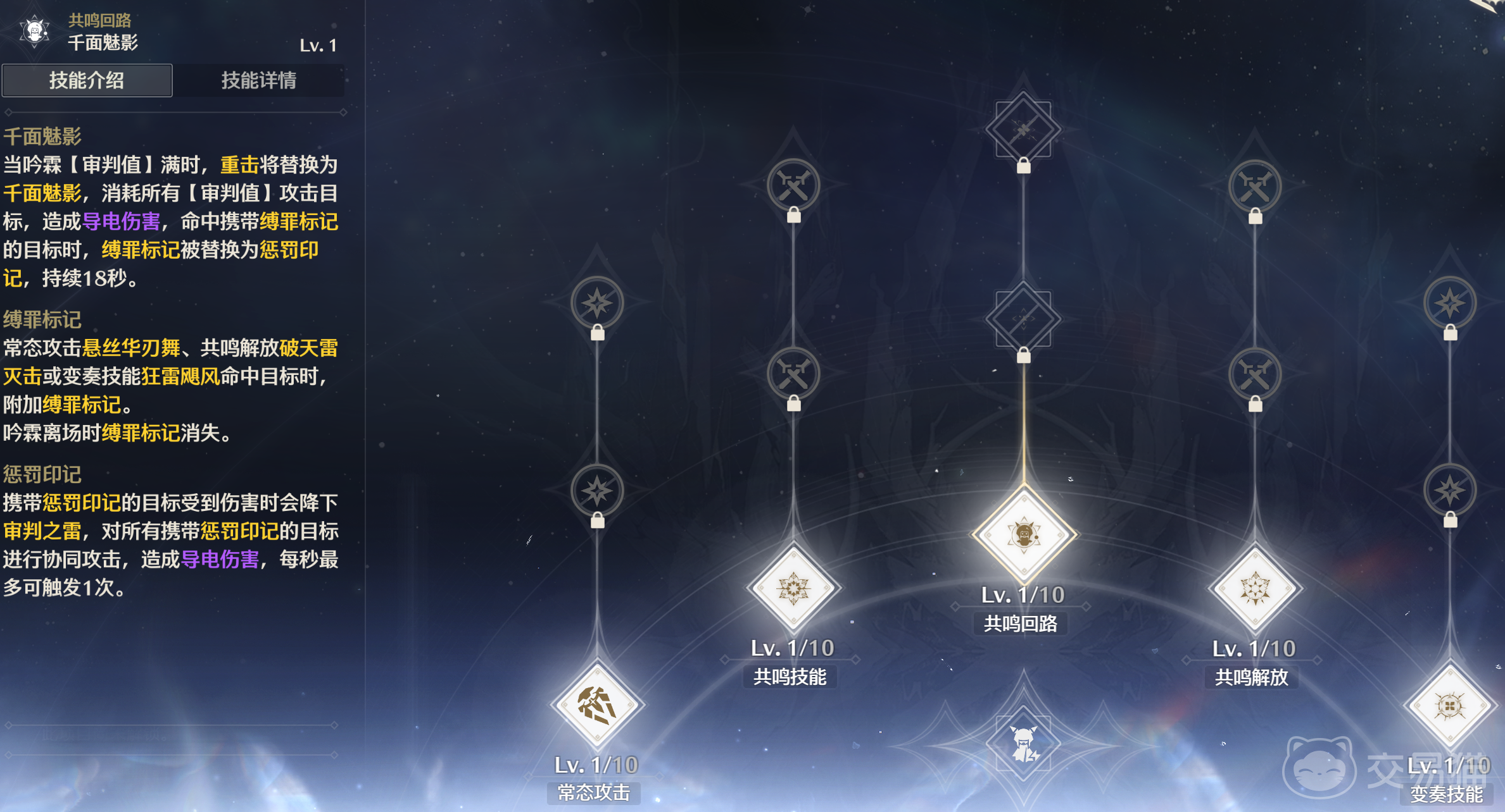 满审判值后长按普攻重击,消耗全部审判值来攻击敌人身上的普通标记将其转化成高级标记,敌人身上有高级标记的时候收到伤害吟霖会协同攻击,即便是在后台这个高级标记也在,意味着挂了高级标记后切换到住C来输出,吟霖在后天也可以补伤害。