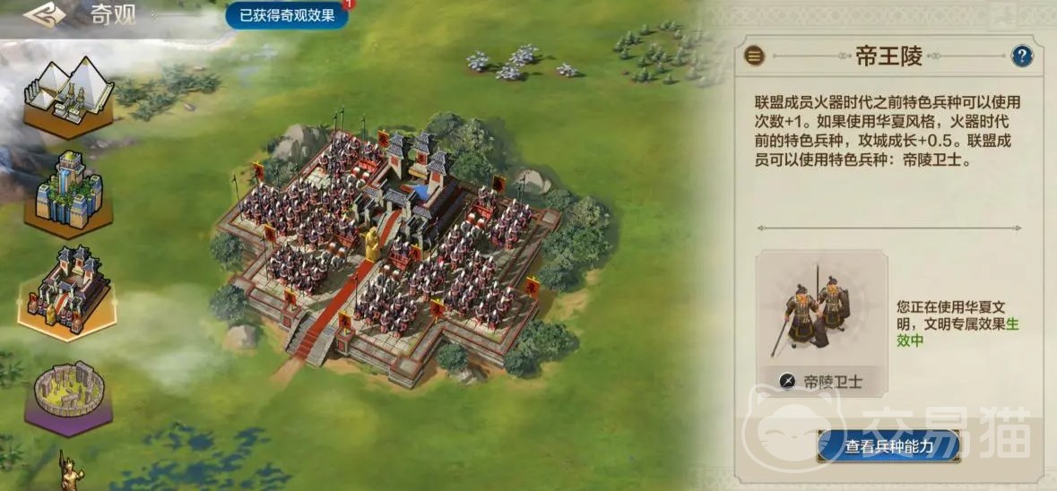 从基础的石头长矛战斗晋升到飞机导弹,想一想就挺魔幻。游戏中玩家还可以选择成为华夏、法国、英国、希腊、埃及文明的开拓者,亲历文明的发展,不同的文明也会不一样的加成,在发展的过程中会感受到文明的价值。