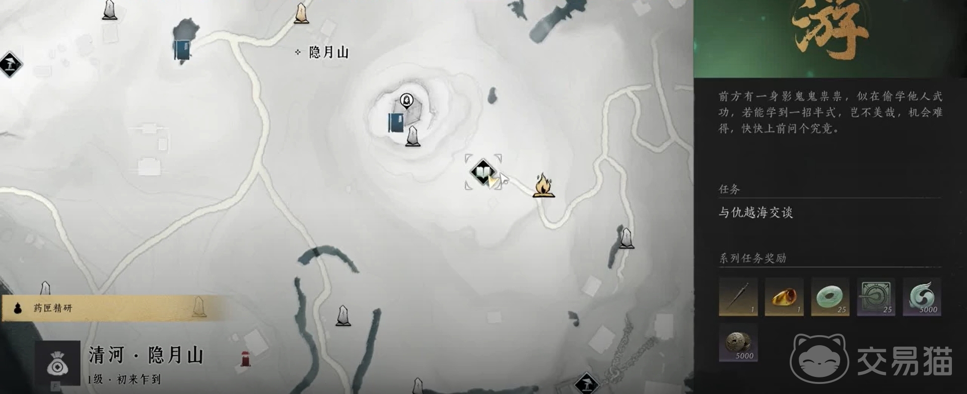 要想在燕云十六声里偷师,首先必不可少的当然是我们前期的准备工作啦!首先我们需要完成与仇越海交谈的任务,解锁“偷师”,这个任务位于地图隐月山的右手边,追踪任务后根据系统提示去听声辨位获得奇术“踏无形”,完成任务后即可获得游龙钥匙。