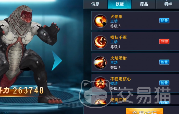 这个游戏的设定非常独特,除了可以变身成奥特曼之后,玩家也可以化身成为怪兽的形象参与战斗,游戏歌尔赞是一个战斗力相对来说比较强的反派角色,这个角色有很多不同的技能可以选择,在游戏里最推荐使用的就是火焰爪这个主动技能,可以在对战的时候给对方带来很大的伤害,同时还可以增加一个不稳定核心这个被动技能,这样在角色被攻击的时候能进行能量的释放,在这个时候可以短期的触发狂暴性能。
