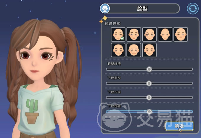 另一个特别重要的是脸型,可以选择或长或尖或圆或方或瓜子的各种脸型,有的呈现清秀动人味道,也有的凸显可爱软萌。选好脸型再搭配上横向的胖瘦程度,可以单独调整下巴的宽窄、长度,以及前后位置的细节。