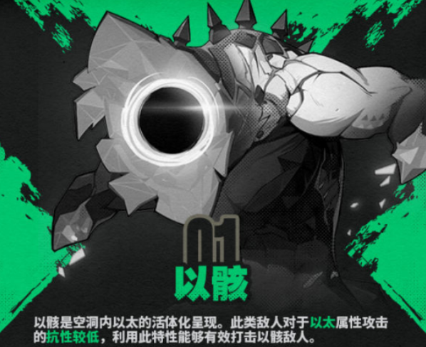 在游戏里玩家所选的角色属性是能够对这些敌人的属性进行克制的,比如在游戏里以骸的属性就是以太类型的角色,以骸是游戏空洞内的一种以太活体化呈现,所以在对战过程中对以太属性的角色抵抗力比较低,玩家可以针对这一特性选择出相应的角色和怪物对战。