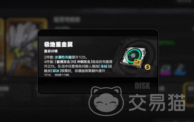 除了獠牙重金属之外,在游戏里还会有极地重金属的设定,这个装备能在游戏里提升冰属性角色的伤害能力,如果是两件套的话,慢慢提升10%,如果有四件套,那么能把冰属性的抵抗性降低28%,可以选择把这个装备应用到爱莲这个角色上,暂时冰属性只有这一个角色,后期如果有其他冰属性玩家也可以选择这个装备直接配置到角色上。