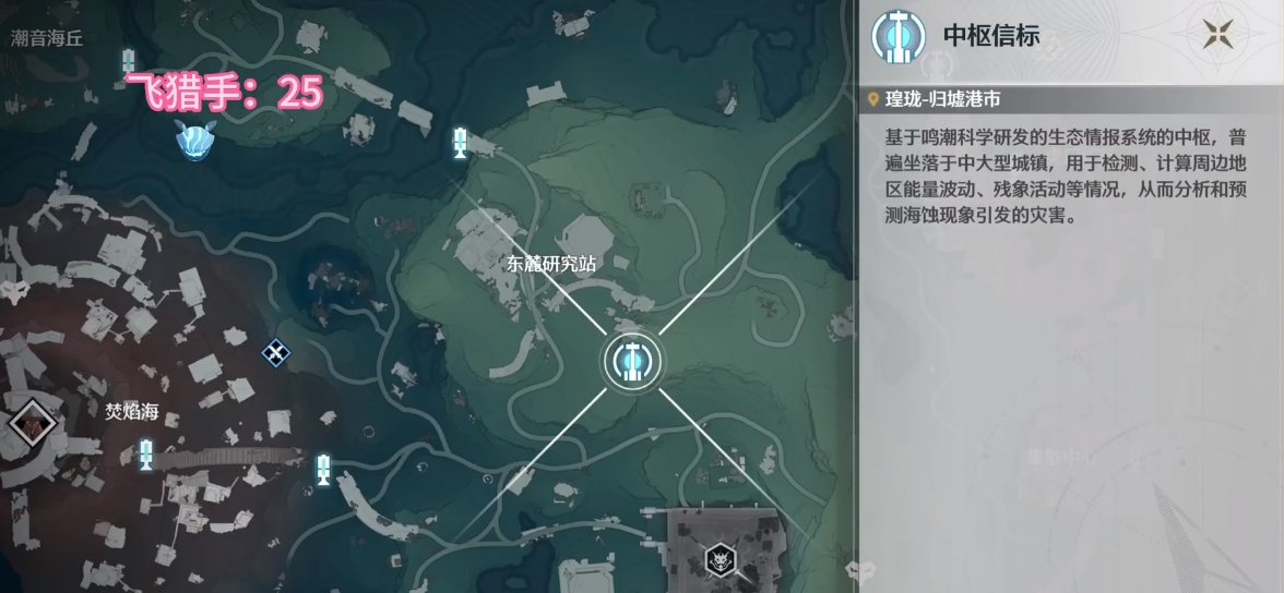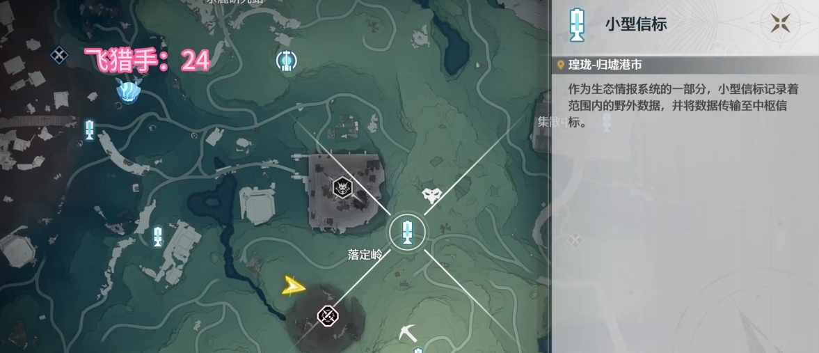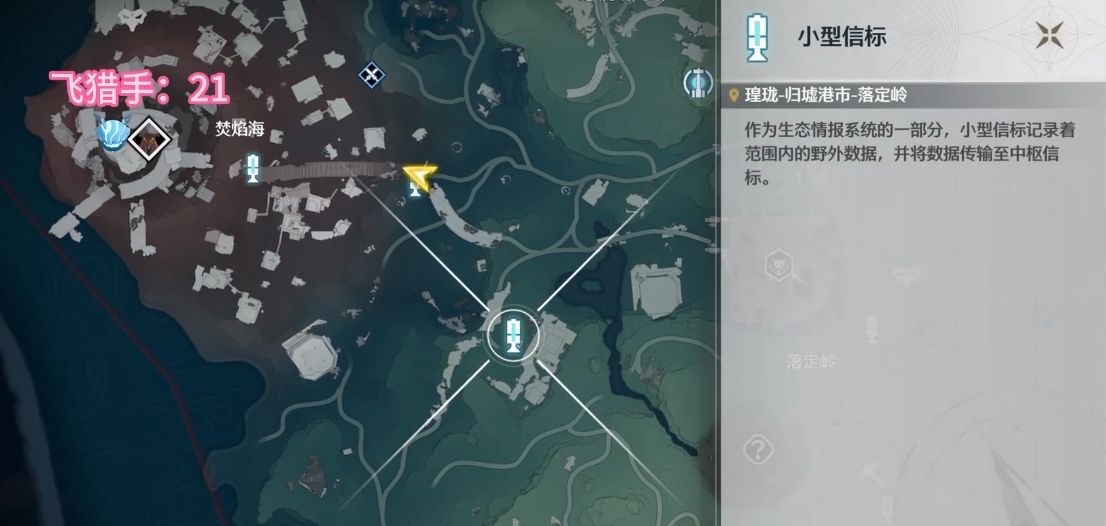 传送至落定岭左边的信标点,来到传送点后就能看到归墟港市的第一个飞猎手;