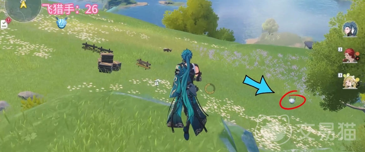拿完第五个飞猎手之后,继续沿着地图往前走,需要前行一段距离后达到一个较高的草地上,能看到下方有一个飞猎手。