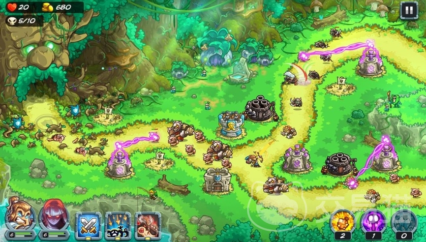 要知道,游戏中每个关卡都有所不同,其中非常挑战各位的战术布局能力,需主动去建立坚固的防御塔体系,同时还要去选择合适的英雄,保护自己的王国免受入侵,该游戏的核心玩法是塔防,每个关卡结束后,会根据大家完成的时间给出专属的星级评价,其中星级越高,获得的奖励也是越丰厚的。