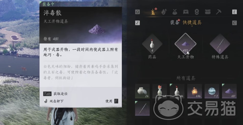 淬毒散则是要在菌子、毒晶、恶相花附近会采集到,推荐去神秘驻地据点,那里有一位毒师还有一些小喽啰,击杀这些敌人会直接掉落淬毒散。