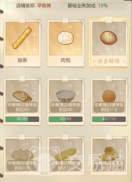 之后玩家们便可以在这个早点摊进行打工了。前期玩家们可以出售的物品只有油条。这个物品的初始价格不算高,我们要想获取到比较高的价格,那么就需要不断地提升早点摊的等级。因为每提升一次,我们早点的价格都会上升。前期玩家们想要快速获取到资金的话,就需要不断提升早点摊的等级才可以。在提升到一定成都的话,还可以解锁全新的早点。