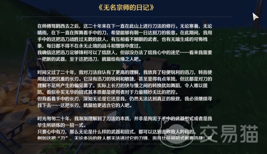 1、先来到闻野滩上方的信标点,进入后会有个宝箱,查看宝箱会获得无名宗师的日记,这个是拿到宝藏的关键;