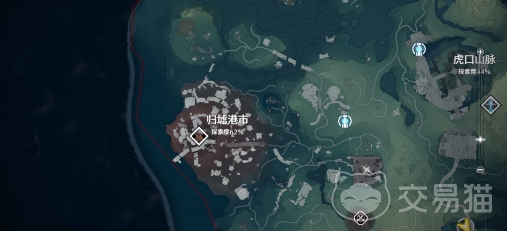 1、宝箱位置在虎口山脉,点击荒弃岩壑上方的传送点;