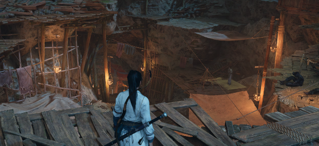 然后打开挂红灯笼的门,进去之后入下水道然后左转去鬼樊楼,这里也有点要击败,然后过一段剧情并且击败敌人,之后和舞台上的。NPC进行交谈并安置好她。之后去2楼找暗房,不会找的话,凡是路过的房子都听一下就可以了。等大家走到尽头的时候推开房门,进去击败无颜。