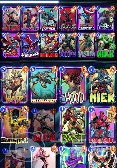 在阵容搭配上可以选择蚁人、莫卓、凯,由于美国队长的增幅比较挑角色,所以如果玩家场地上的同类型卡牌被摧毁,后续玩家的战斗力就会较为颓疲,在战斗之中选择凯作为稳定局势的卡牌也是尤为关键的,可以防止己方的卡牌被摧毁,同时美国队长和蚁人还有莫卓都可以持续性地增加自己的基础伤害。