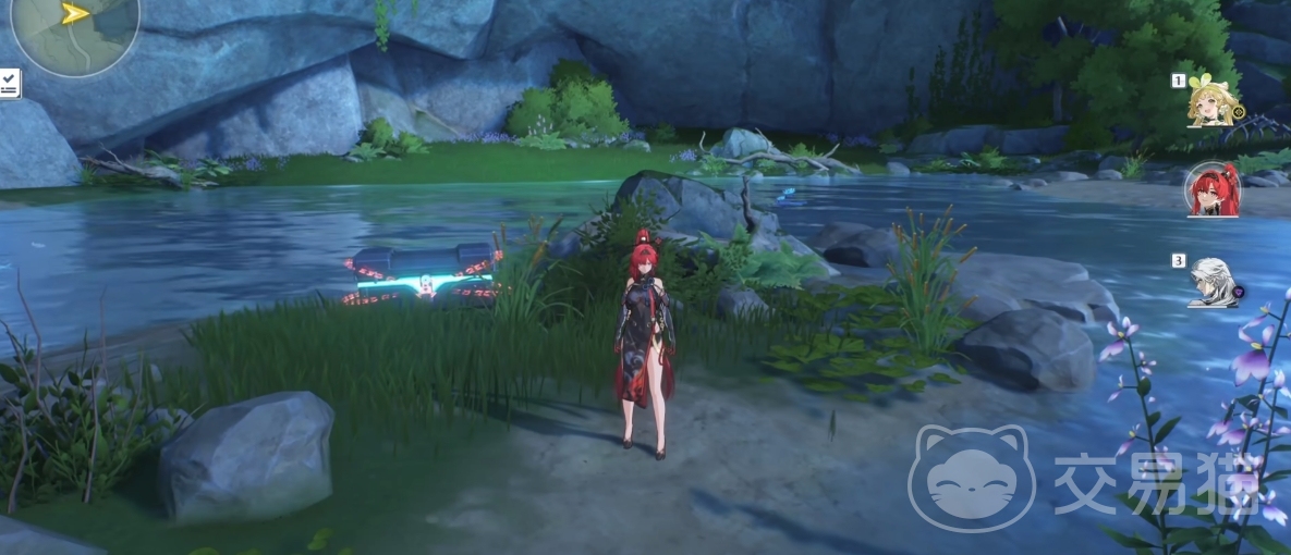 3、回到岸上后就能看到瀑布宝箱的位置在闪闪发光了。