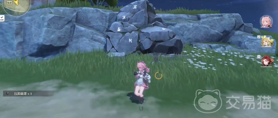 3、再从目标圆盘的视角右移会有一块巨大的岩石,击碎它获得第三个方块,