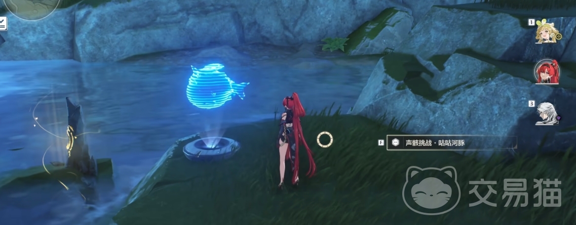 2、在这里的水中有个隐藏的小怪:咕咕河豚。玩家需要先战胜它,宝箱才能解锁。想要完成和咕咕河豚的挑战,需要注意和它对战时,玩家也会化身为一只河豚,那想要快速获胜需要一直保持往上游,然后通过吃河里漂浮的声骸图标来增强自己的实力直到游到瀑布最上方的漩涡就算挑战胜利。