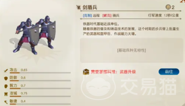接下来说的是铁器时代,近战的兵种是剑盾兵。特色兵种有长剑士,雇佣军团等等。这个时期开始各个兵种之间各方面属性都有了较大的提高,同时本身也有了属性的不同,玩家们需要选择契合自己英雄的兵种才可以。