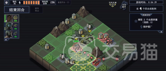 玩家在进入对局之后,会进入一个正方形的格子战场,游戏的战斗方式是回合制的,所以我们就需要合理的安排机甲的位置,让它们最大化的攻击周围的敌人,这样才可以快速消灭外星虫族。
