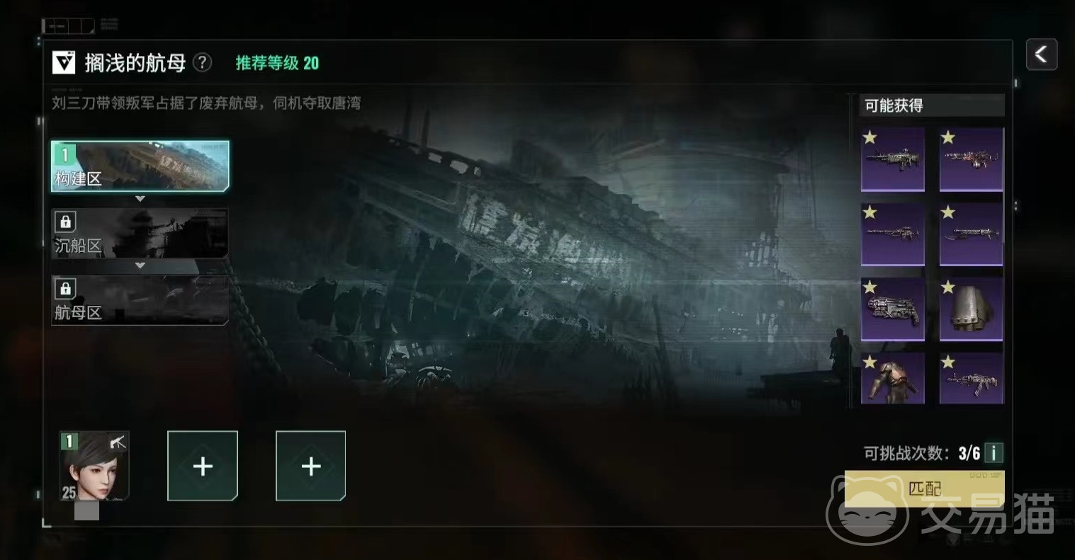 这里所说的沉船废墟指的是玩家20级时挑战的副本搁浅的航母其中的沉船区,也就是第2个关卡。战胜之后可以获得当前等级的紫色装备。解锁很简单,只要大家等级达到20级并且完成相应主线就可以直接开启。一般来说推荐大家25级时候再去战斗,因为即使达到25级也是非常简单的,这样等级高一些,在这里战斗也会变得更简单。