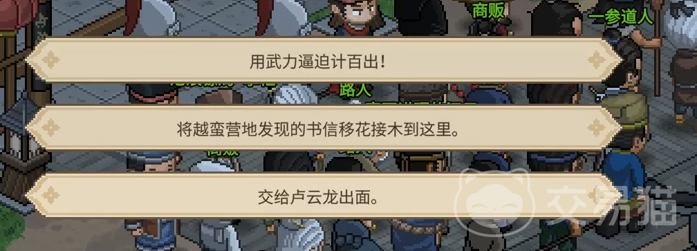 我们在加入叶家军之后,玩家们可以在越蛮营地里面找到一封书信,这封书信里面所说的便是关于柴王所做的一些缺德的事情。之后玩家们先来到军营,之后需要去到襄阳城,发现计百出在这里进行了舆论引导。