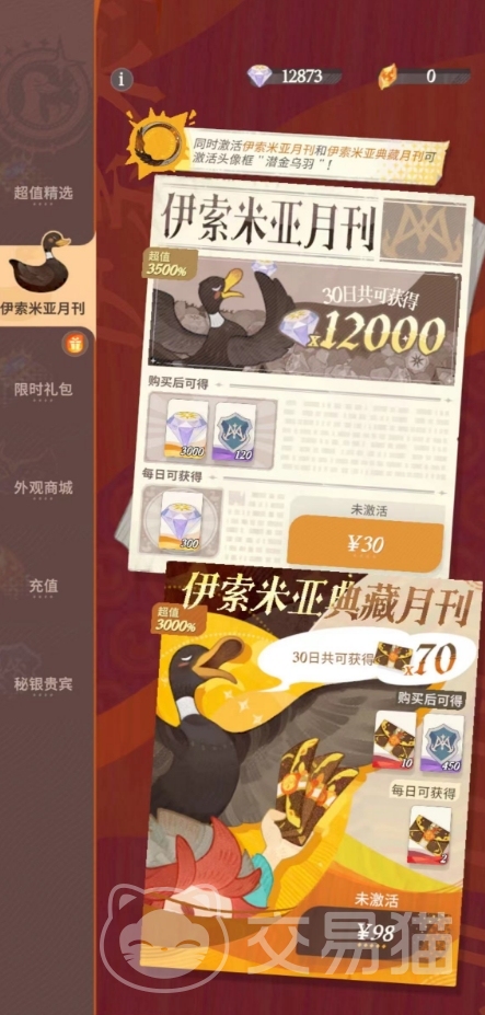 玩家可以直接在菜单栏找到商城板块,点击进入之后可以直接看到伊索米亚月刊,这里面会有两种月卡的形式,第一种是伊索米亚普通月刊,价值30元,激活之后玩家可立即获得3000钻石以及120的秘银积分,然后在未来的每一天都能获取到300钻石,持续时间为一个月。这个普通的月卡获取到的奖励主要用于在游戏内升级角色以及购买物资,而这个秘银积分也可以提升我们的贵宾等级,贵宾等级越高,玩家所能解锁的稀有外观以及资源就越丰富。