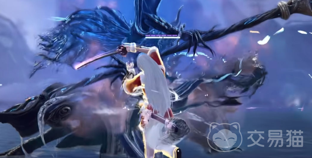 水万象总共有两个形态,人形形态和兽形态两种,先介绍人形态的打法,人形态普通攻击会有一个较长的蓝色蓄力,玩家可以通过振刀格挡,随后水万象会触发反击招式,一种是白刀反击,还有一种是蓝色蓄力反击,如果振刀后boss是原地罚站,则是白刀,白刀有快慢刀之分,需要大家目押进行闪避,被振刀后钻入水中则是蓝刀反击,蓝色蓄力则和一开始的蓝霸体一样,通过振刀就可以格挡。