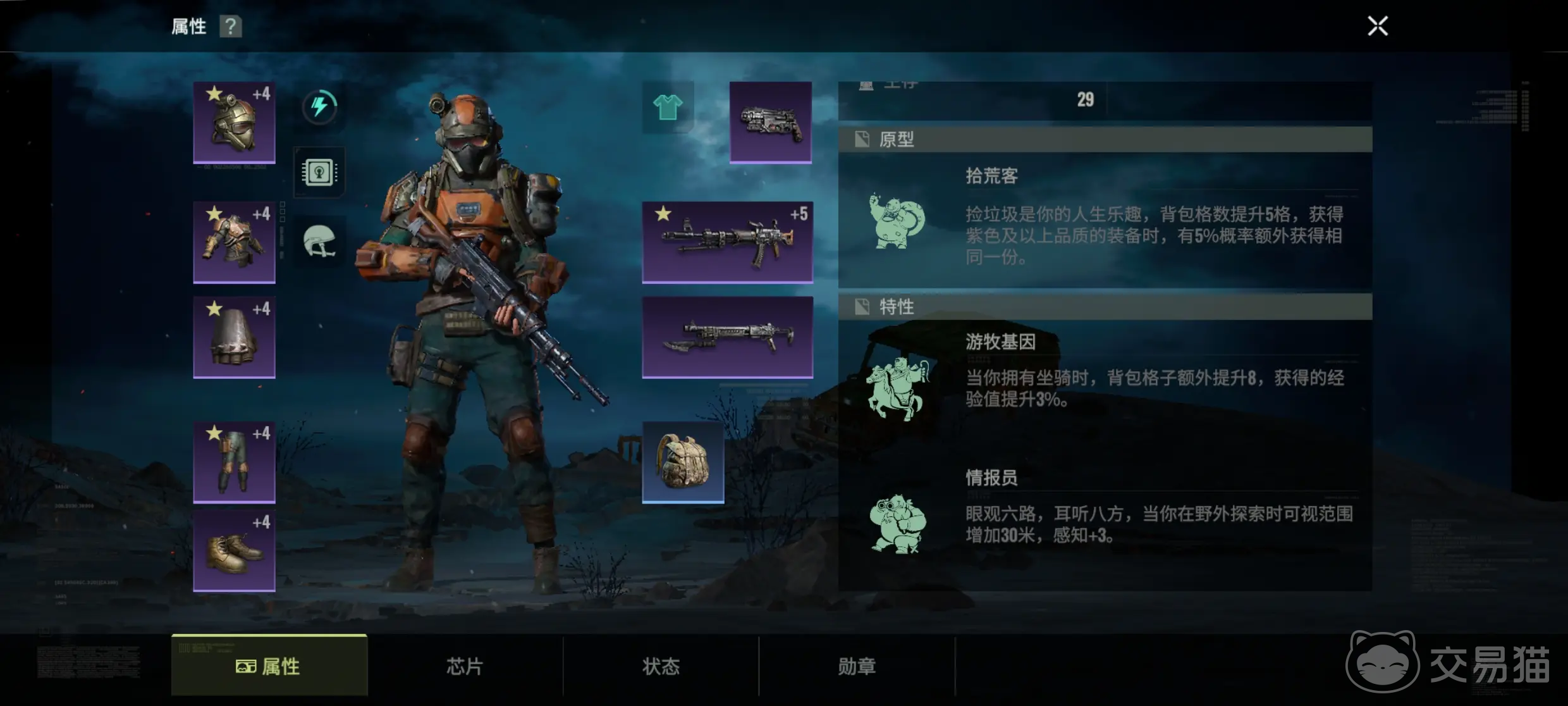 前期想要有体验感,首先得生存下去,所以对于萌新来说,非常推荐使用保安这个原型,毕竟初期的时候对于游戏的方方面面都不了解,而保安这个职业可以直接让护甲的效果提高8%,同时受到的伤害会降低1%,那么就能让角色在场上存活更长的时间,有更好的体验感受,同时也提高了大家的容错。