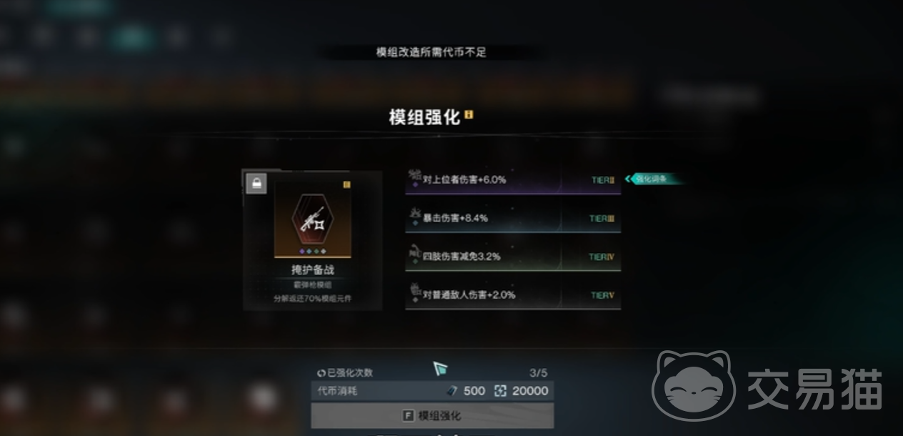 2、模组改造需要的材料是逐递增的,基本上是一倍往上翻的。需要用到的材料有对应部位的信息源以及转能电池。信息源基本上是通过任务或者是副本获取,因此缺口还是比较大的。