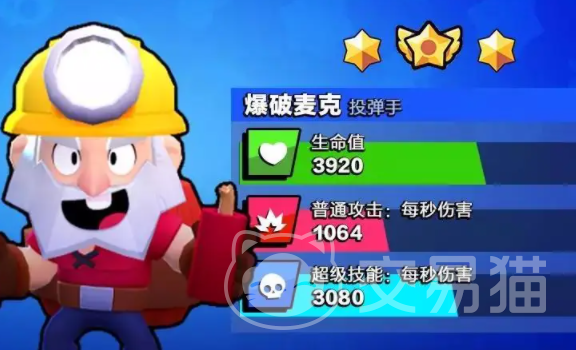 爆破麦克在游戏里是一个投掷类型的英雄,很多玩家在游戏过程中也会发现有一些关卡里面会有大量的墙壁,那爆破麦克就可以利用自己的投掷技能扔出雷管,甚至可以触发超级技能扔出一个大木桶,这样不管是掩体,对手还是墙体都能统统震飞,在爆炸之后还能产生大范围的伤害,每一个回合可以使用三次技能。