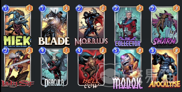 在阵容搭配上,玩家可以选择德古拉和隐形女,这两个角色一个是能够继承被弃卡的角色的基础战斗力,一个是能够防止米克的范围受到动摇,当然玩家在中后期的阵容上,也可以选择金刚狼、毁灭者、卡耐基等等,这三个都是弃牌流中比较重要的输出角色,尤其是金刚狼,作为打不死的小强,他能够屡次复活又屡次增加基础战斗力。