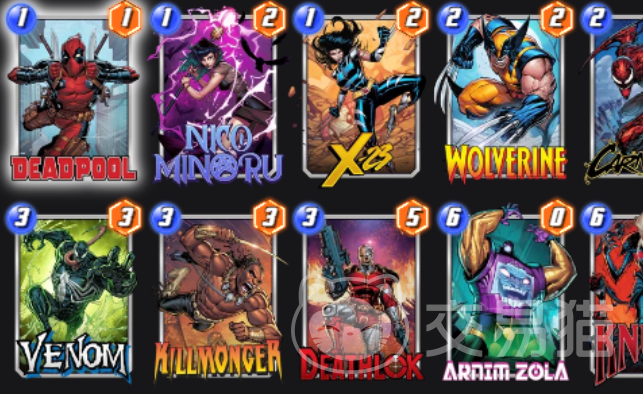 在阵容的搭配上,玩家一般会选择金刚狼、卡耐基、死侍、死亡女神、X23等等,这些角色都是能够增加摧毁后的伤害倍率的,值得一提的是,如果玩家选择了摧毁流,那么就得防止敌人的限制类卡牌,在兜底类角色上,玩家可以选择凯、德古拉等等,其中比较推荐的是德古拉,德古拉可以直接继承被摧毁角色的基础战斗力,如果玩家的死侍在战斗力非常高时被摧毁了,那么玩家可以直接使用德古拉进行继承,值得一提的是,死侍实际上是不能被直接摧毁或打败的,他每次都会重新回到玩家的卡牌中,等于玩家可以使用德古拉白嫖八点以上的战斗力,一来二去将运营打好,玩家基本上能够立于不败之地。