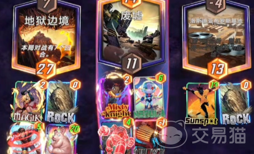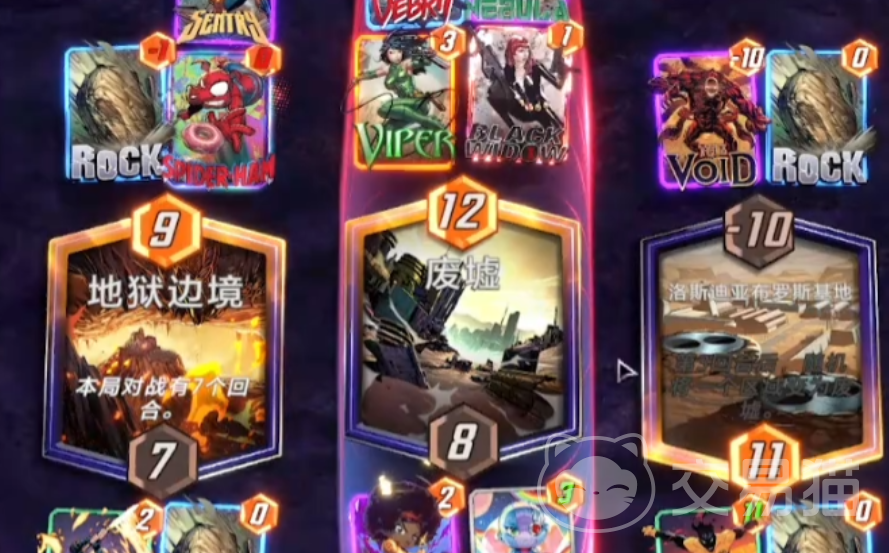 如果各个换卡角色成功进行了换边,歼灭者的攻击力也能得到提升,在各个场地上如果玩家使用功能性卡牌将敌方限制住了,敌人在第一回合和第三回合是比较难发育的,而玩家则可以使用低攻击力的卡牌就赢下整场比赛,整体而言蜘蛛侠这张卡牌比较考验玩家的大局观,玩家如果选择使用蜘蛛侠作为团队的主要功能位置,则需要合理地进行换卡和搭配。