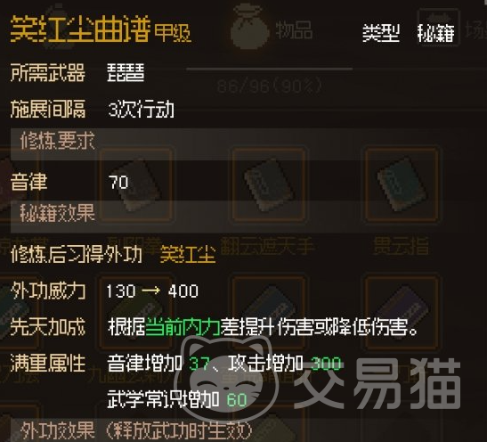 那么关于大侠立志传笑红尘如何获取大家应该都清楚了,方法也不算太难大家按照上方的步骤去做即可,不过在做之前一定要注意好自己的音律属性值,不然得到另外一本内功就没法进行更改了。