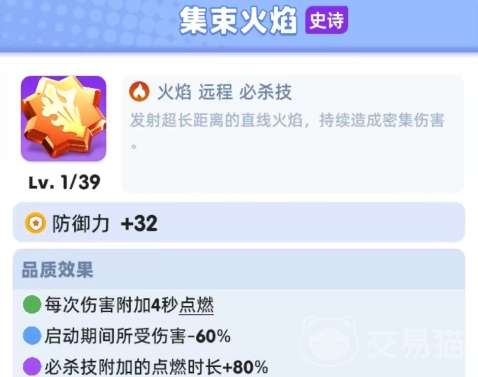 特别适合零氪金的玩家来使用,更好的提升作战的实力,还可以搭配战纪火焰冲刺的技能,而必杀技可以选择燕尾葡萄以及集束火焰来使用,被动技能可以选择火焰新星,最好所有选择的技能都与火焰属性有关,这样才可以发挥武器点燃的最大效果。