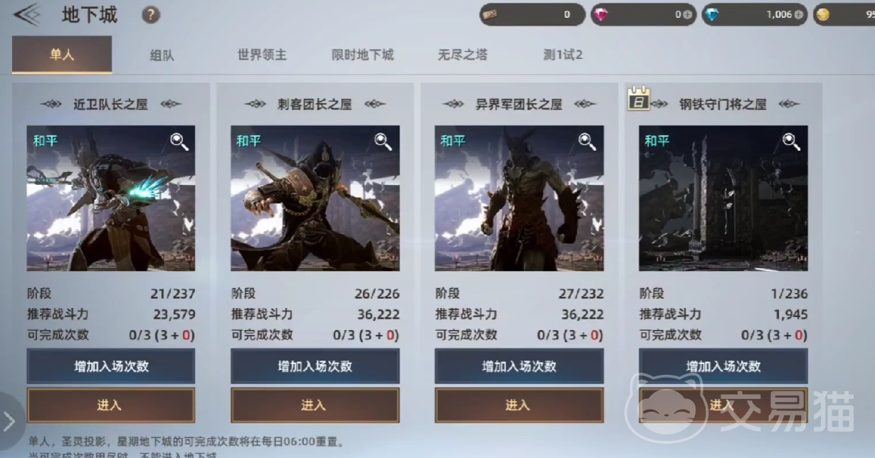 玩家可以通过每日挑战单人地下城来获得相关的奖励,单人赛之中有近卫队长、刺客团长、异界军团长、钢铁守门将的观察模式,如果玩家想要获得琳兮这张卡牌,则需要去挑战异界军团长,异界军团长总共有232个阶段,推荐玩家战斗力达到三万六之后再进入,游戏中的每日挑战次数只有三次,玩家可以通过使用特殊道具来增加奖励次数。