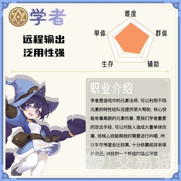在游戏中拥有不同的职业,那么学者也是一款非常受欢迎的角色之一,也非常推荐大家在前期的时候选择性使用,可以远程的造成法术攻击,还有许多多元素的技巧可以灵活的进行运用,通过自己的特殊技能来为队伍进行强大的支援,对敌人造成巨大的伤害,但是在使用过程中需要注意,最好和擅长防御的见识和坦克来组成一个队伍,获得更好的输出环境,魔法也是需要通过吟唱来做好准备,比较考验大家对于元素的灵活运用。