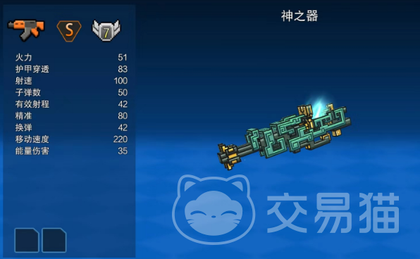 可以获得三个比较稀有的物品,第一个是比较强大的S级武器【神之器】,这个武器的外观也是十分符合青铜宝箱的风格,枪身的设计风格采用的就是比较特殊的青铜材质,其火力也是十分优越,射速高达100点!