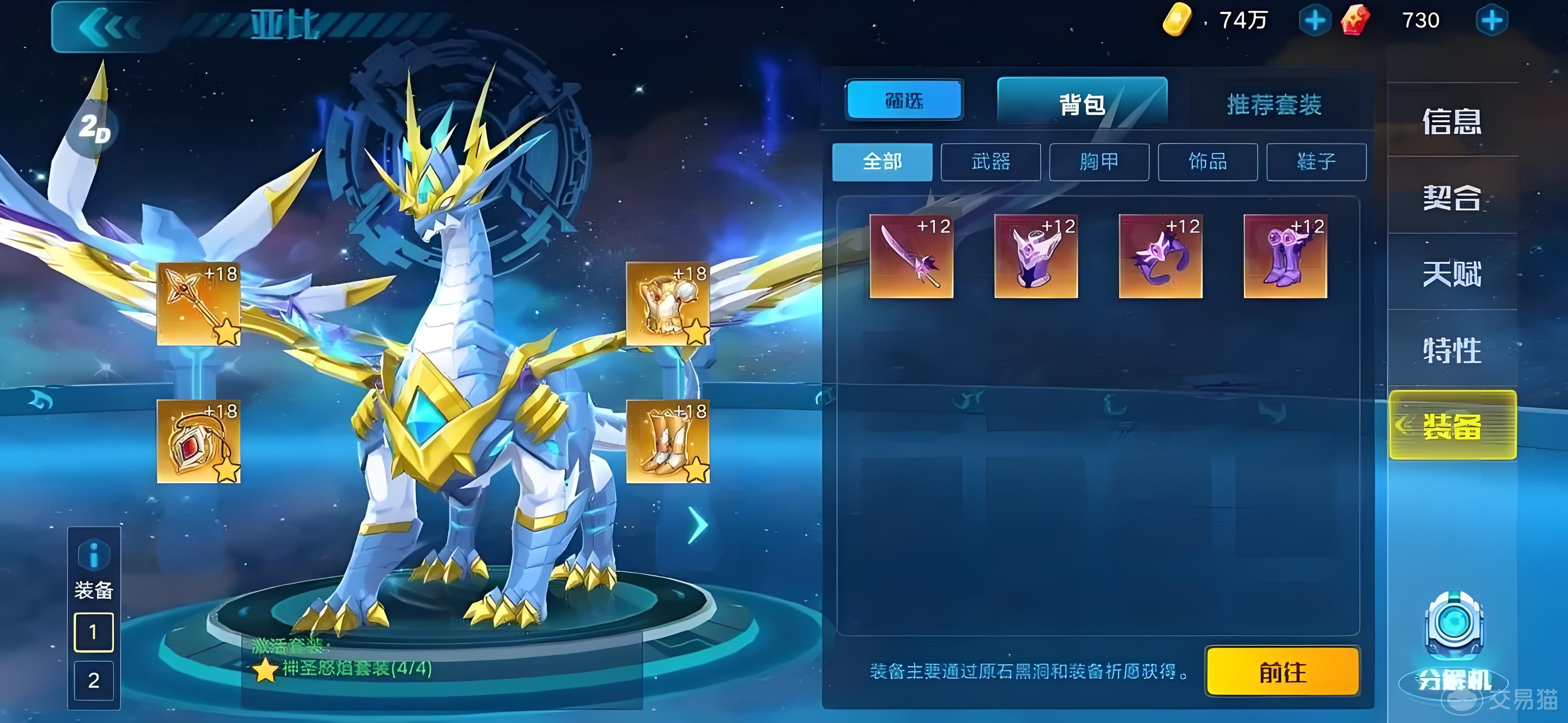 看到这里应该会有同学提问,游戏中的套装种类那么多,我们又该怎么去分辨呢,为了让伙伴们都可以对套装进行区分,小编就拿天启荣光套装举个例子,在天启荣光套装总共分为两件套和四件套,在每一个亚比的身上都有4个空位,在这些空位上穿上两件装备就是两件套,四件全都穿上就是四件套,两件套和四件套的效果也是很明显的。