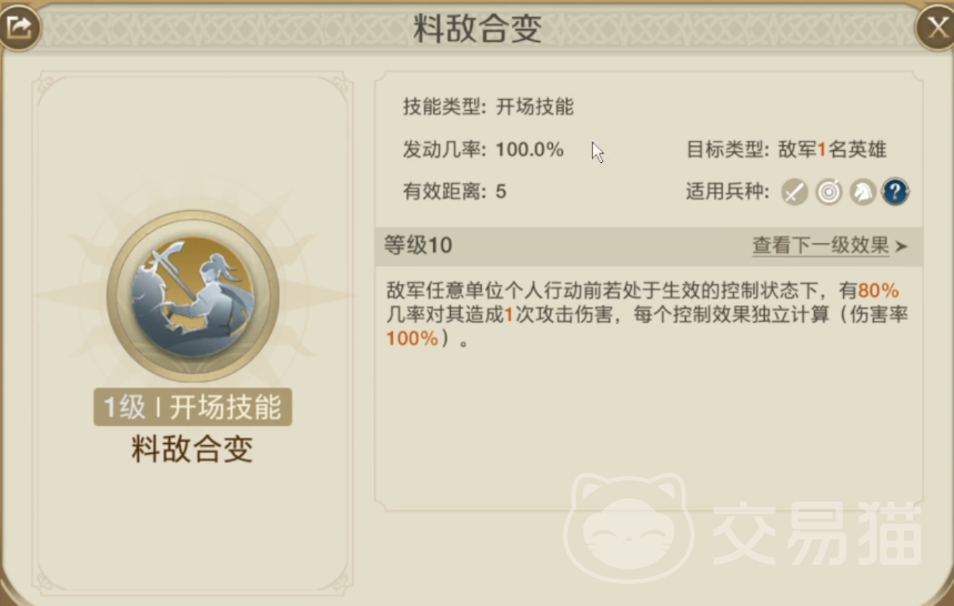 除了主流的技能外,这里选择带了箭雨流星,虽然倍率不高,但倍率不代表就是实际伤害,这个技能是有附加兵力的,而且多次伤害也不低。此外其他的一些技能还需要准备,箭雨则不要,要知道先手爆发队的爆发周期基本上只有前3个回合,,所以尽量都是选择不用准备的瞬发技。