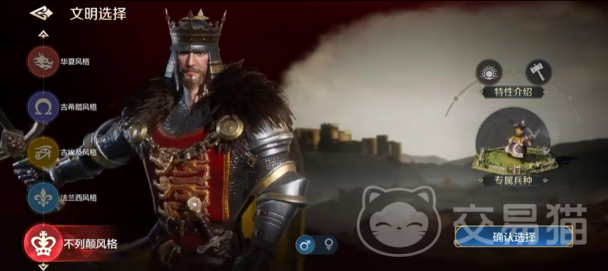 这种文明的特性可以让民兵征兵的速度提高5%,资源充足的时候,那么带来的收益也就十分客观了。专属科技是能让首府还有地图军事建筑建造的速度都提升10%,军事建筑加速就非常有用,尤其是在要塞以及临时营地的加速,能够帮助大家更好的铺路,战争的时候铺路走的更快,能够打对手一个措手不及,大型战役中很好用,它的专属兵种主要就是在防御方面好,铁器时代可以使用皇家禁卫,擅长近战防御,守卫炮兵是工业时代可以使用的,非常强的防御远程兵种。