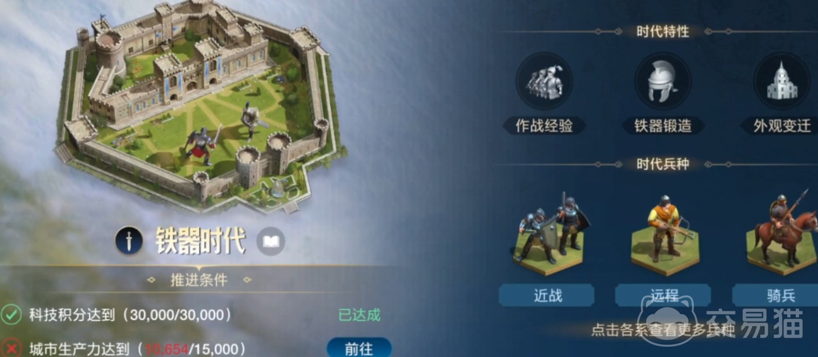 这个游戏里目前分为以下这几个时代,分别是远古时代,青铜时代,铁器时代,火器时代,工业时代,电器时代这六个时代,每个时代都有它独特的科技与兵种,其中大家最关注的飞行兵种是只有到了火器时代才会解锁的。