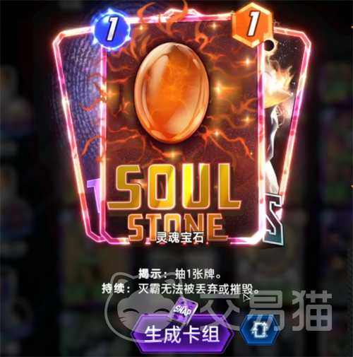 心灵宝石:揭示后,从卡组中抽取两张初始能量消耗为1的卡牌。